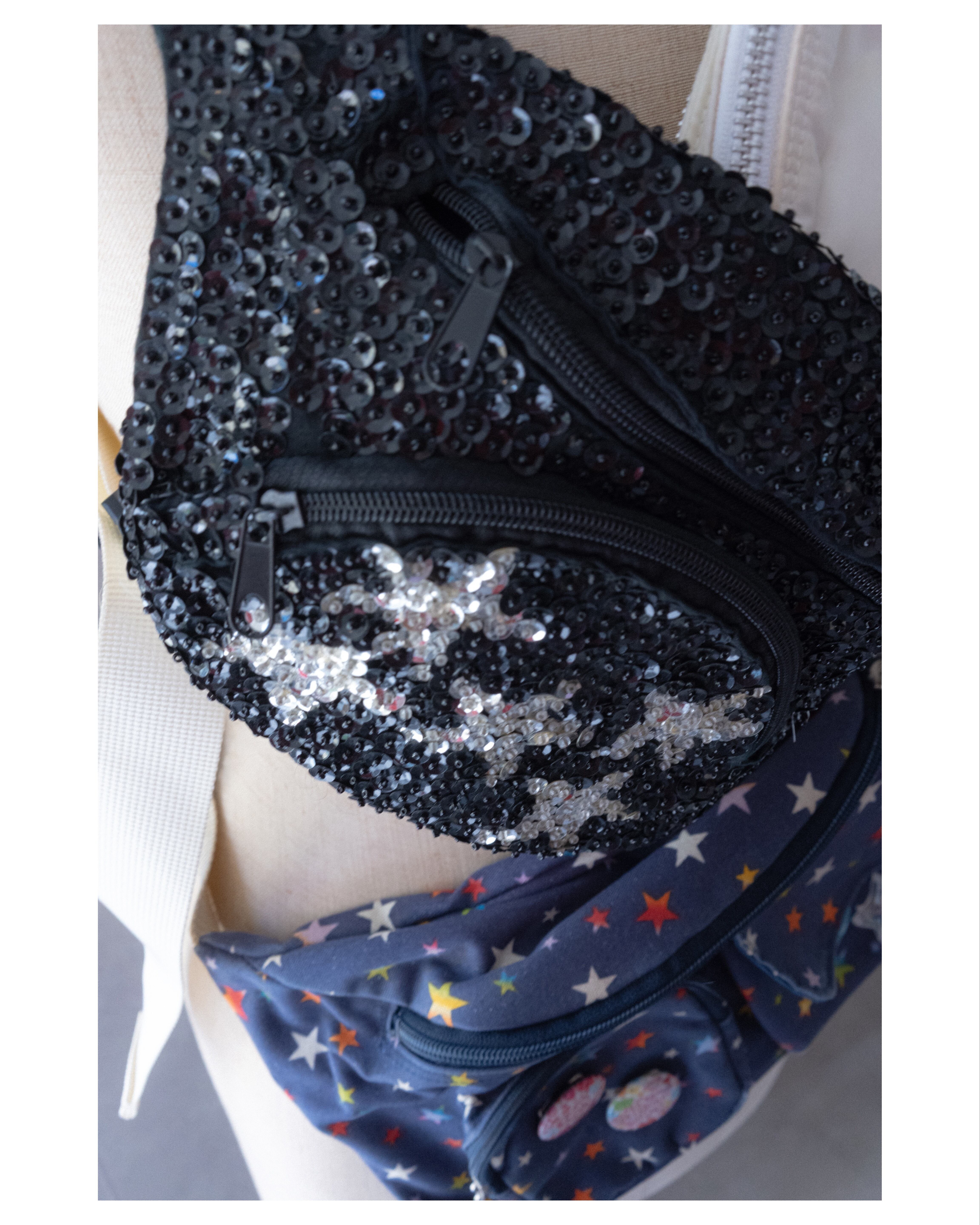Black sequin west bag